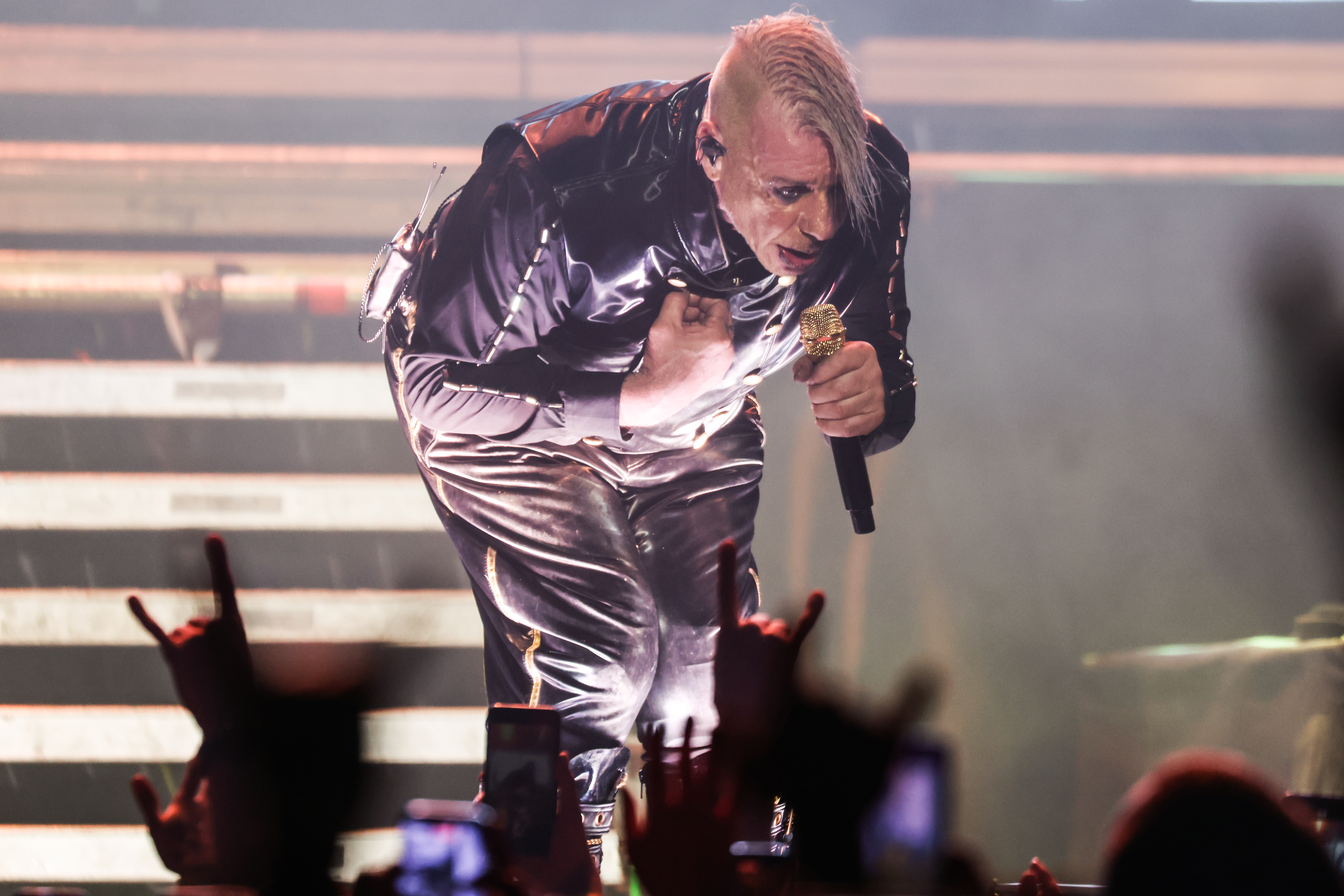 “Tanzlehrerin” sırasında sahneye çıkan balerin ve lazer koreografisi, konser temposunda belirgin bir geçiş yarattı. Bu kısa sakinliğin ardından yeniden sertleşen ritim, “Allesfresser” ile güçlendi. Parça boyunca kullanılan grotesk görsel öğeler, Lindemann’ın ironik anlatısını destekledi.