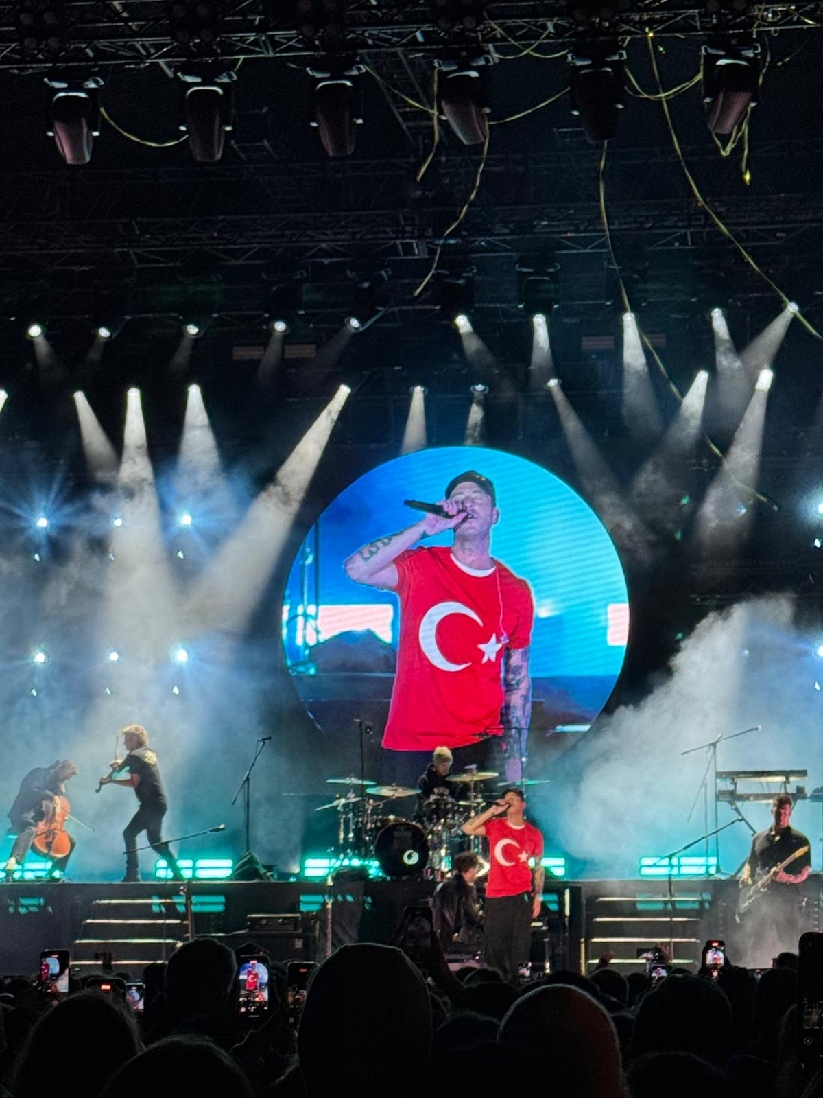 Konserin ilerleyen bölümlerinde Ryan Tedder’ın sahneye Türk bayraklı bir tişörtle çıkması, izleyiciler arasında özel bir an yarattı. İstanbul’u sevdiğini ve burada sahne almaktan mutluluk duyduğunu belirten Tedder, konser sonuna kadar bu tişörtü çıkarmadı.
