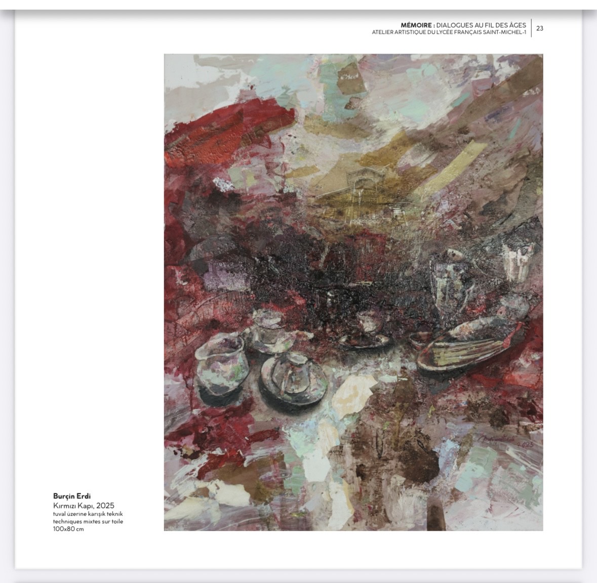 Sergi metinlerine katkı sunan Dr. Murat Erdin, Saint-Michel Fransız Lisesi’nin 1886’dan bugüne uzanan tarihine dikkat çekerek okulun kendisini bir kuşaklar arası zaman tüneli olarak tanımlıyor. Osmanlı İmparatorluğu’ndan Cumhuriyet’e uzanan bu eğitim mirasının, bugün de genç kuşaklara modern ve disiplinli bir eğitim sunduğunu vurgulayan Erdin, projeyi geçmişle gelecek arasında kurulan sanatsal bir köprü olarak değerlendiriyor.