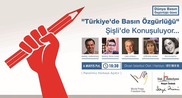 Dünya Basın Özgürlüğü Günü, Şişli’de bir panel ile kutlanıyor. Şişli Belediyesi, Türk basınının usta isimlerini 4 Mayıs Pazartesi günü bir panelde ağırlıyor. Çiğdem Anad, Can Ataklı, Barış Yarkadaş, Barış Pehlivan ve Pelin Batu gibi isimlerin konuşmacı olarak yer aldığı panel, Harbiye’deki Divan İstanbul Otel’de düzenlenecek. Açılış konuşmasını Şişli Belediye Başkanı Hayri İnönü’nün yapacağı panelde Anad, Ataklı, Yarkadaş, Pehlivan ve Batu, basın emekçilerinin karşılaştığı sorunları farklı bakış açılarıyla ele alacaklar. Türkiye, Basın Özgürlüğü’nde 149’uncu SıradaSınır Tanımayan Gazeteciler Örgütü’nün yayınladığı 2015 Basın Özgürlüğü endeksine göre; Türkiye 180 ülke arasında 44.16 puanla 149. sırada yer aldı. Endekste Türkiye’nin listenin altında düşük bir puana sahip olmasında, İnternet’e yönelik müdahaleler, sansür, eleştirel olan gazetecilere davaların açılması ile bilgi özgürlüğünün zayıflayarak kötüleşmesi neden olarak gösteriliyor.