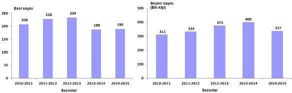 Yıllara göre oynanan eser ve seyirci sayılarındaki değişim, 2010-2015