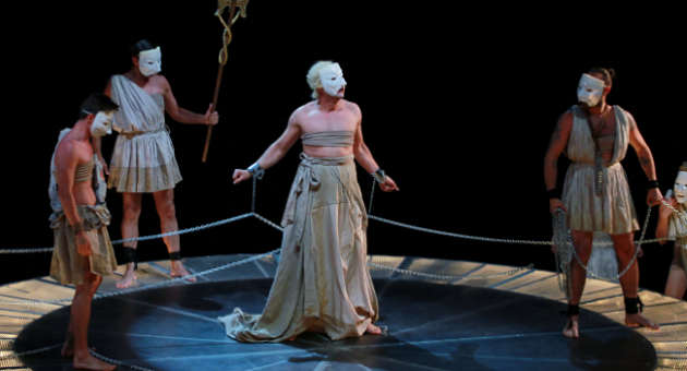 Aeschylus tarafından yazılan, Codruta Popov ile Geanina Jinaru-Doboş tarafından oyunlaştırılan ve Kokan Mladenovic'in yönettiği oyun yaklaşık 1 saat 40 dakika sürüyor.